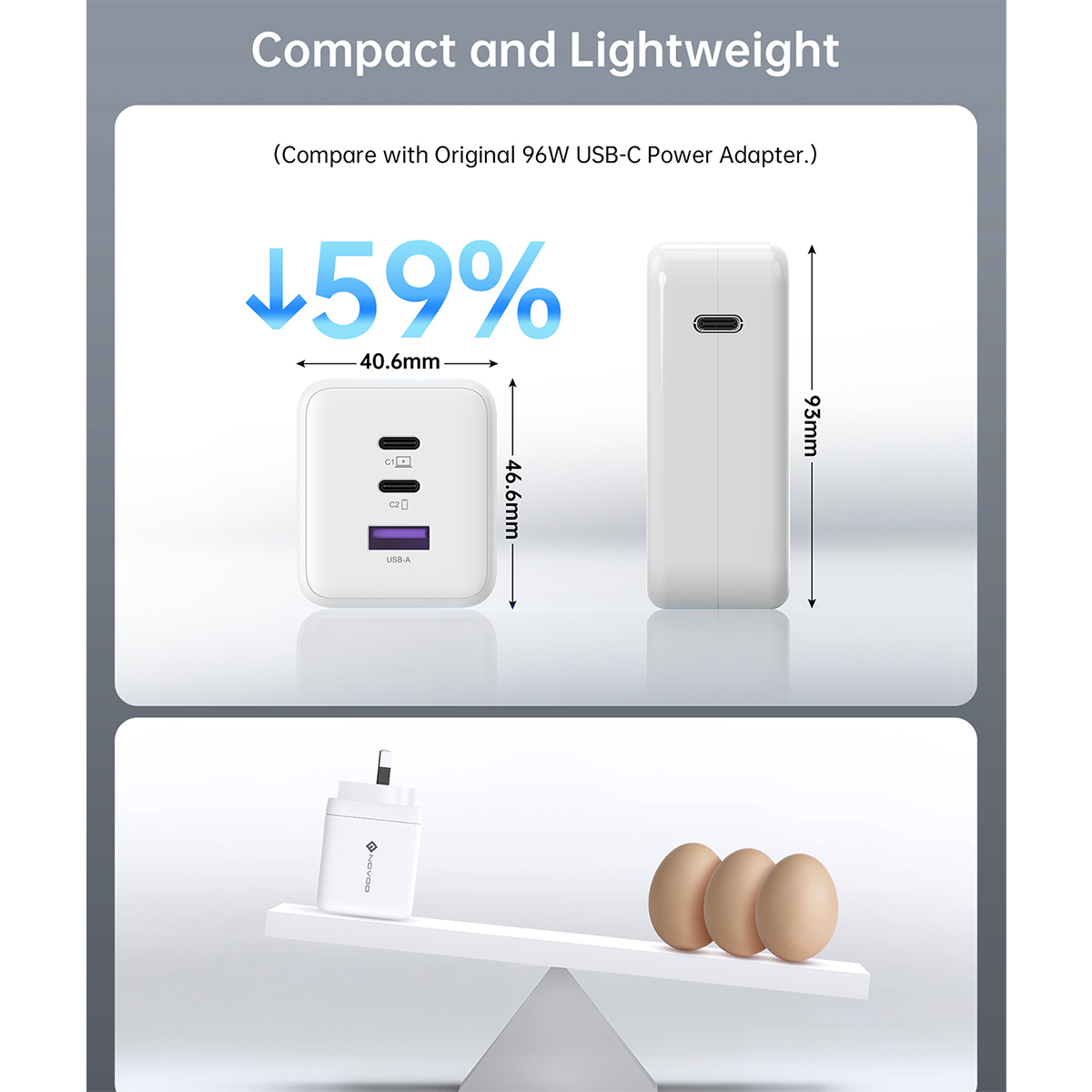 NOVOO 100W USB C GaN III Fast Charger Block with 3 Ports, PD 3.0 & PPS, Compact Power Adapter AU Plug for MacBook, iPhone 16/15 Pro, Galaxy S25/S24 Ultra, iPad Pro, Dell XPS 13 – White