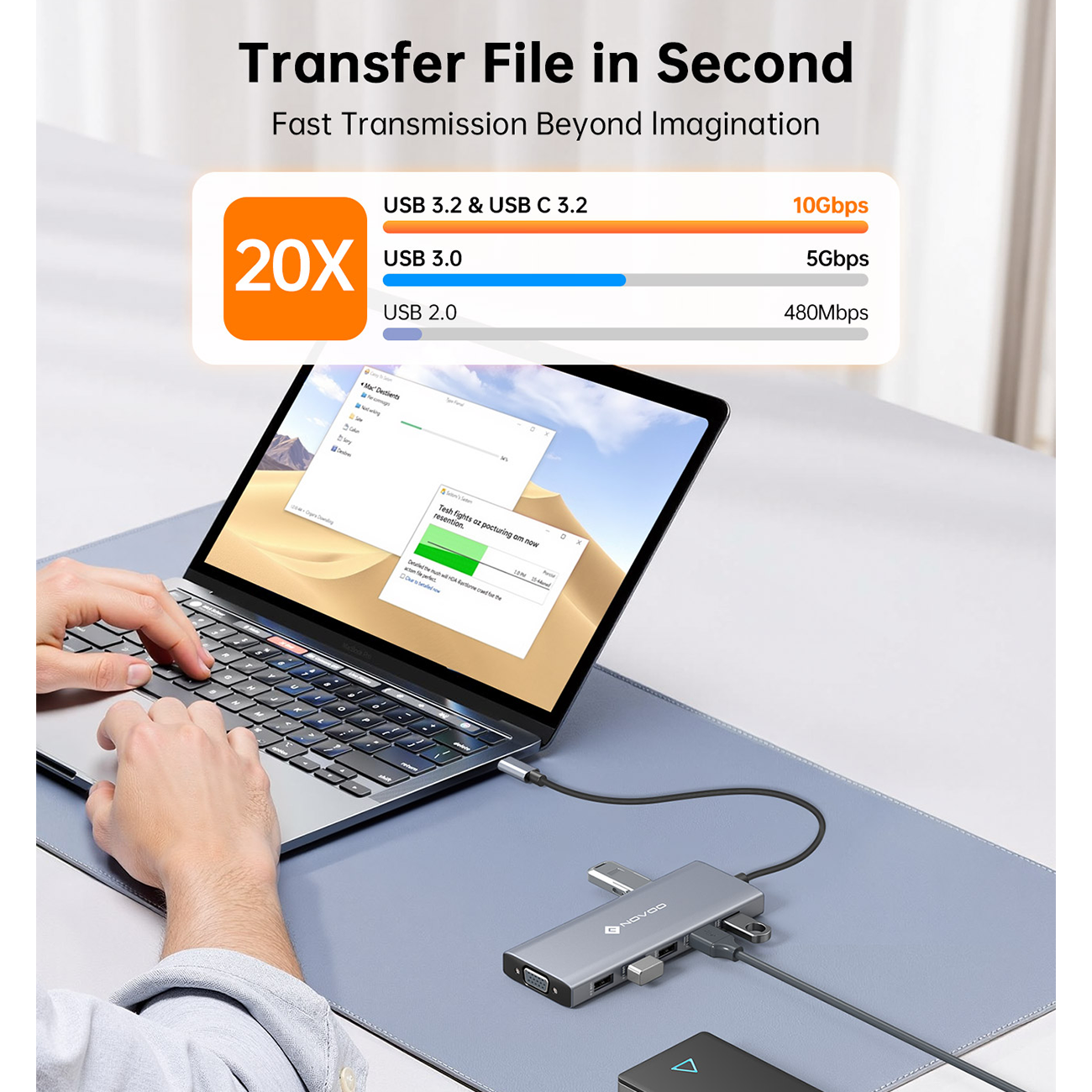 ✦ 10Gbps Super Speed Data Transfer: USB-C 3.2 and 2×USB-A 3.2 ports at 10Gbps speed— ideal for transferring large files, photos, or videos in seconds.