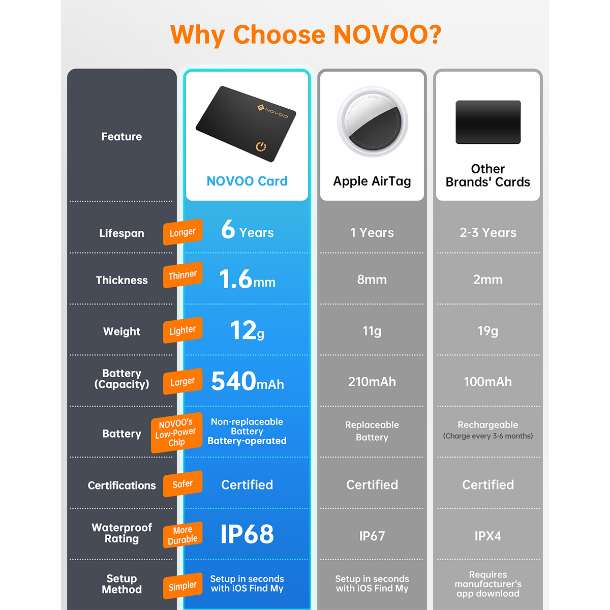 ✦ Slimmest Tracker Card: Only 1.6mm thick, Perfect for your wallet.