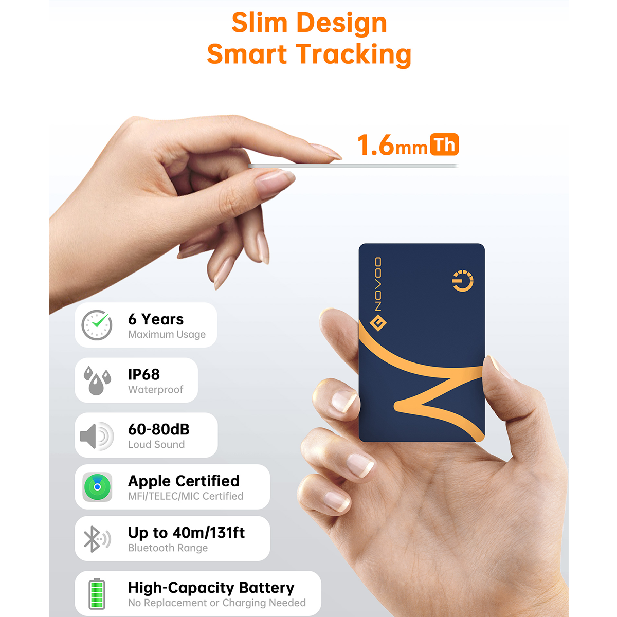 ✦ Slimmest Tracker Card: Only 1.6mm thick, Perfect for your wallet.