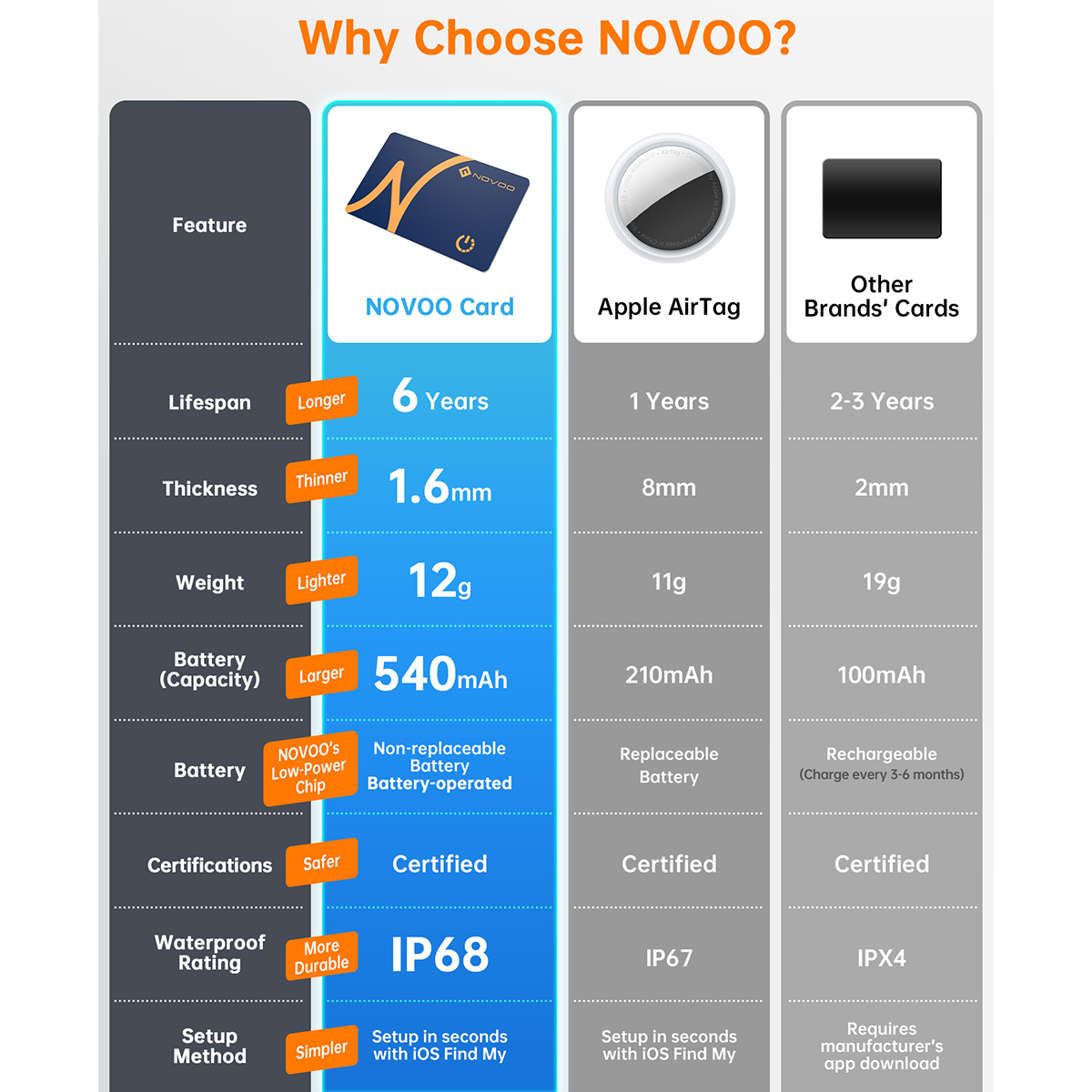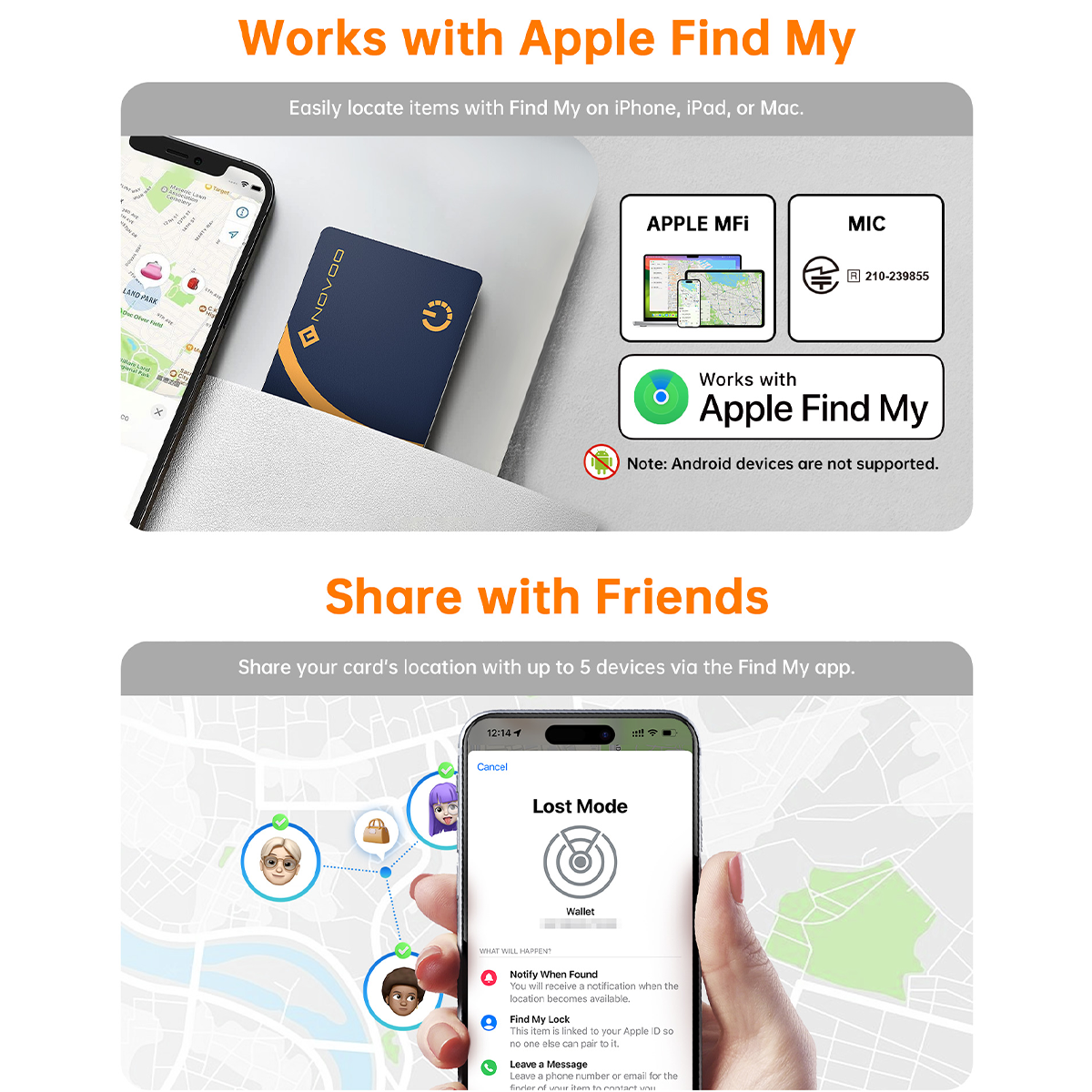 ✦ Apple Certified, MFi/TELEC/MIC Certified. Locate items effortlessly with "Find My" on iPhone, iPad, or Mac