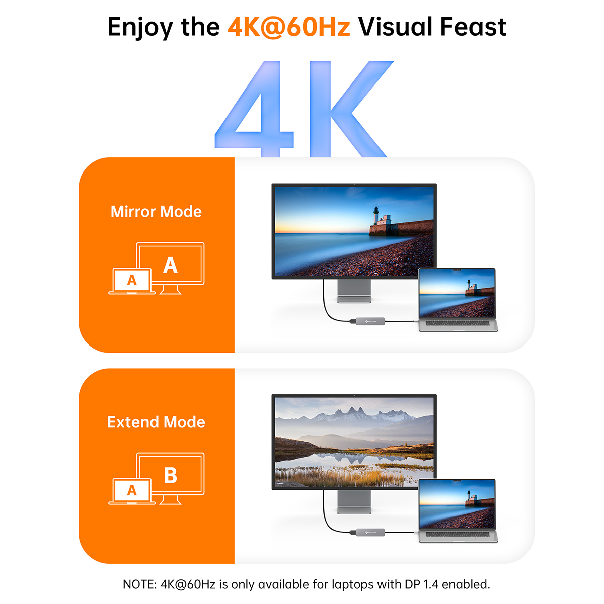 - USB C to 4K@60 HDMI Adapter- 3 x USB 3. 0 Ports 5Gbps- 100W PD USB C Charging